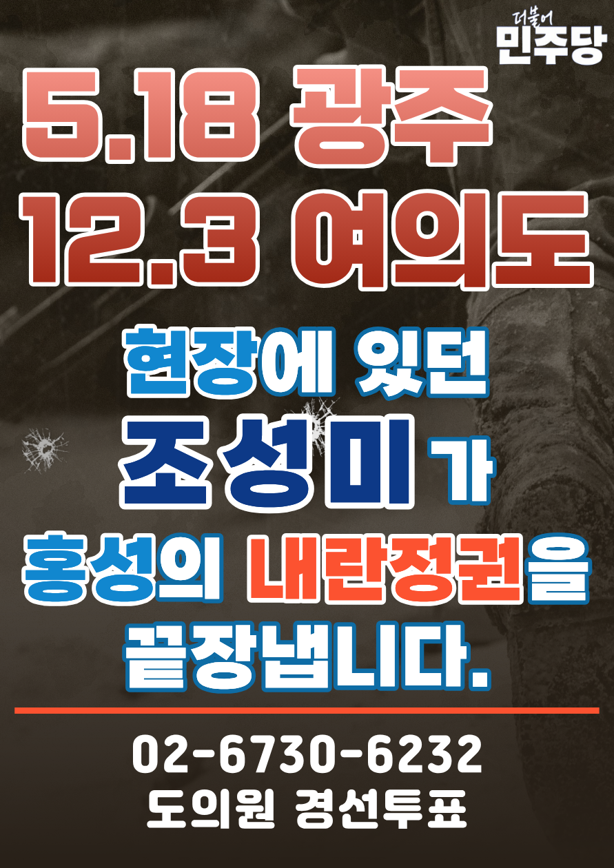 오늘 29일부터 시작되는 경선 투표를 앞두고, 제 가슴 깊이 묻어두었던 이야기를 꺼내려 합니다. 저 조성미에게 민주주의는 책으로 배운 이론이 아닙니다. 제 젊음이 고스란히 담긴 생존이자 사명이었으며, 이재명 대표와 함께 '내란 세력'을 심판해야 할 시대적 소명입니다.