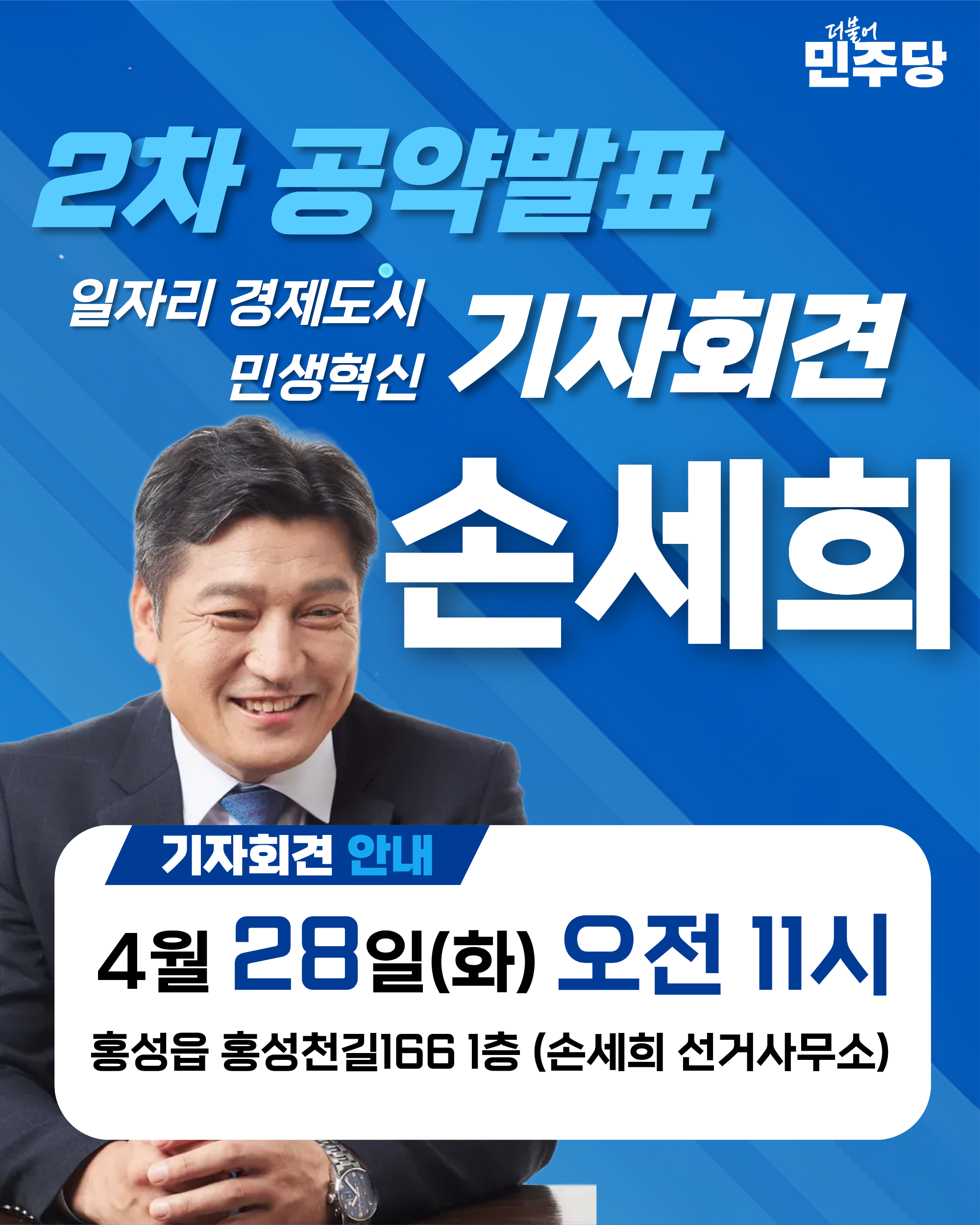 홍성의 새로운 미래를 설계하는 발걸음이 더욱 빨라지고 있습니다. 지난 1차 정책 발표를 통해 홍성 발전의 큰 틀을 제시했던 손세희 홍성군수 후보가 오는 4월 28일, 더욱 구체적이고 실질적인 민생 대책을 담은 제2차 정책공약 발표 기자회견을 갖습니다.