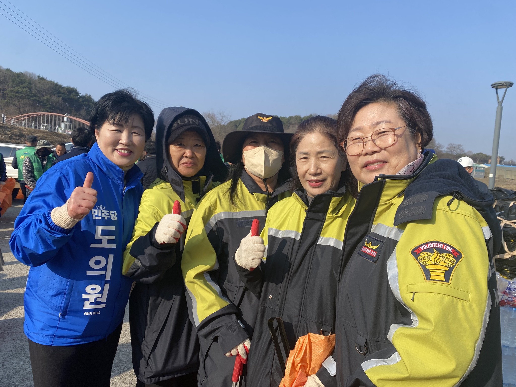 조성미 충남도의원 예비후보 활동 기록. 홍성군 금마면 홍양저수지 환경정화 활동 현장 스케치. 지역 공동체와 마을 일꾼들의 단합된 모습, 새마을운동의 정신을 잇는 지역 사랑.